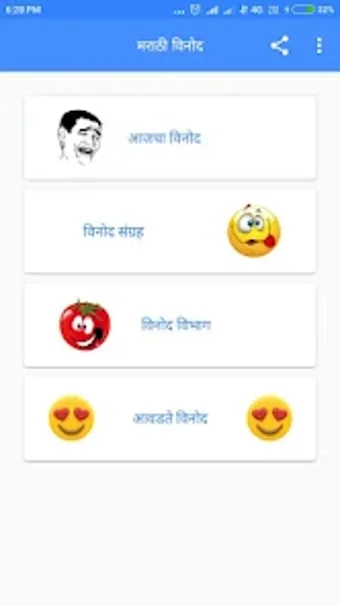 Marathi Jokes (मरठ वनद) เป็นแอปพลิเคชันที่น่าสนใจสำหรับการใช้ชีวิตที่ออกแบบมาสำหรับผู้ใช้ Android โดยมีการรวบรวมอารมณ์ขันในภาษา Marathi อย่างกว้างขวาง แอปฟรีนี้ให้การเข้าถึงที่ไม่จำกัดต่อมุกตลกที่หลากหลายประเภท รวมถึงมุกสามี-ภรรยา, หมอ-คนไข้, และมุกบอลลีวูด เพื่อให้ผู้ใช้สามารถหาจุดตลกที่สมบูรณ์แบบเพื่อแบ่งปันกับเพื่อนและครอบครัว แอปนี้ออกแบบมาเพื่อการใช้งานแบบออฟไลน์ ทำให้สะดวกสำหรับผู้ใช้ในการเข้าถึงมุกตลกได้ทุกที่ทุกเวลา
